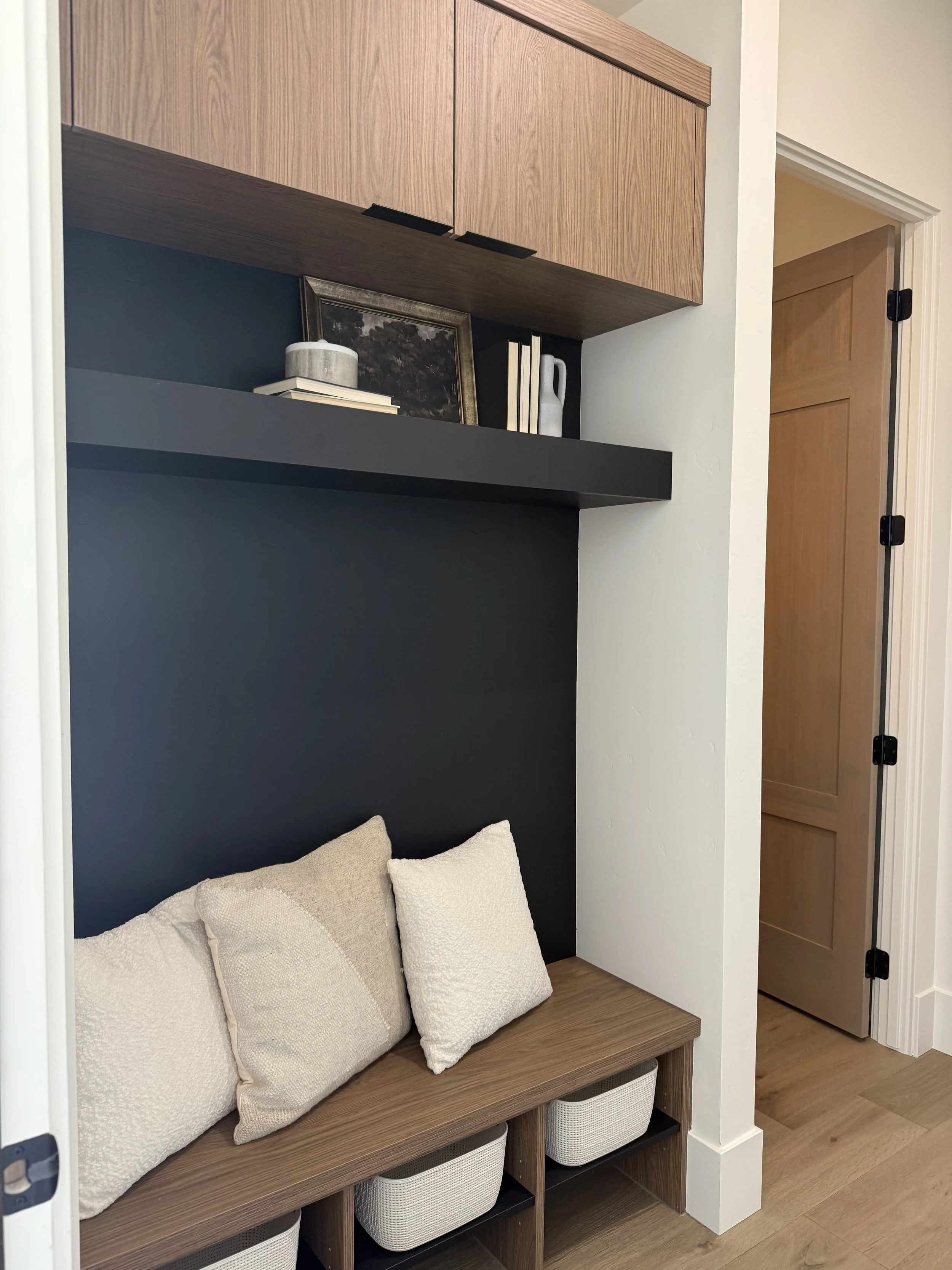 Custom built butler’s pantry with shiplap and floating shelves that took this kitchen to the next level.