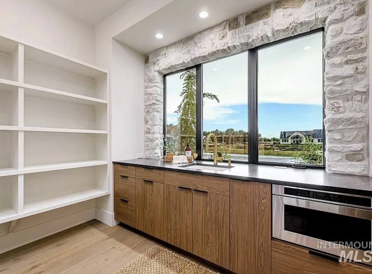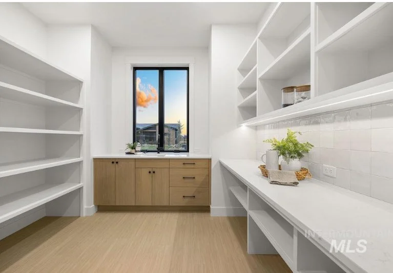Butler pantries serve as versatile spaces that offer an ideal area for food preparation, temporary storage for food service, and a functional spot to house small kitchen appliances. This design helps free up your kitchen counters, allowing for efficient service and optimal workspace utilization without occupying all available counter space.